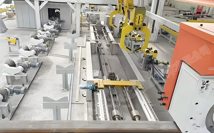 本款探伤设备采用水浸法超声耦合技术,核心设计遵循“全覆盖、高精度、自动化”原则,整体由超声波检测系统、机械传动系统、电控系统及辅助系统组成。工作时,通过吊装装置将被检气瓶放置于水池两侧的旋转辊道上,辊道带动气瓶原地旋转,探头装置从起始位置驶入探伤区域,通过气瓶旋转与探头水平移动的协同动作,形成螺距小于探头有效长度的螺旋扫描线,实现气瓶直管段100%全覆盖检测。